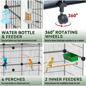 IWE Extra Large 3-Tier Bird Cage with Wheels, Movable, Reinforced Metal Mesh, Escape-Proof Design