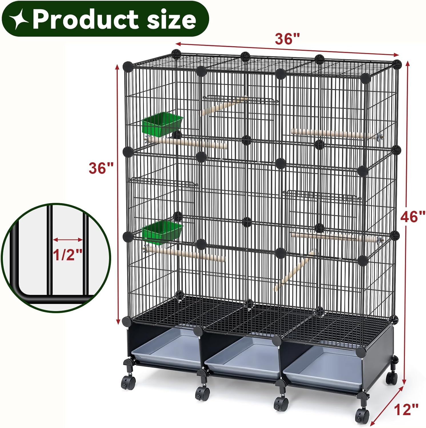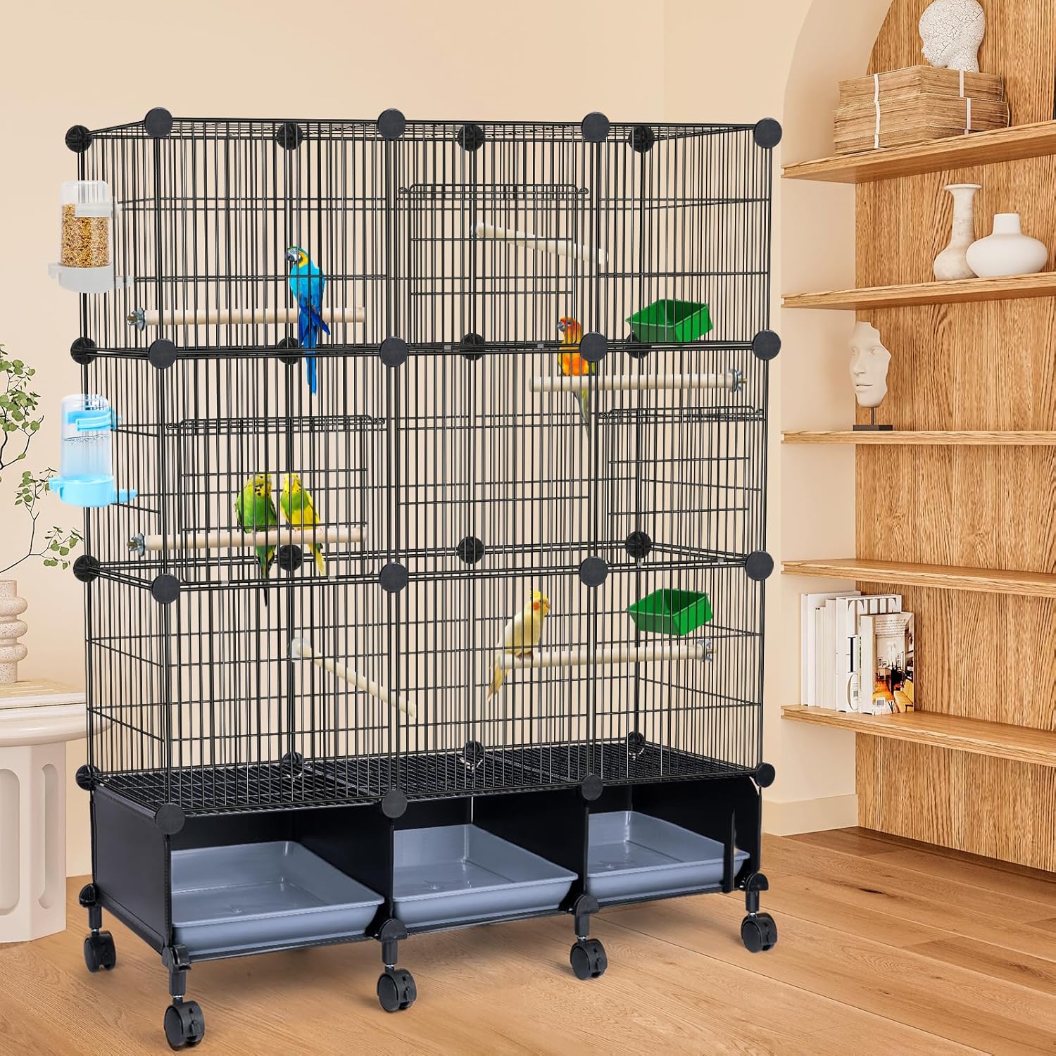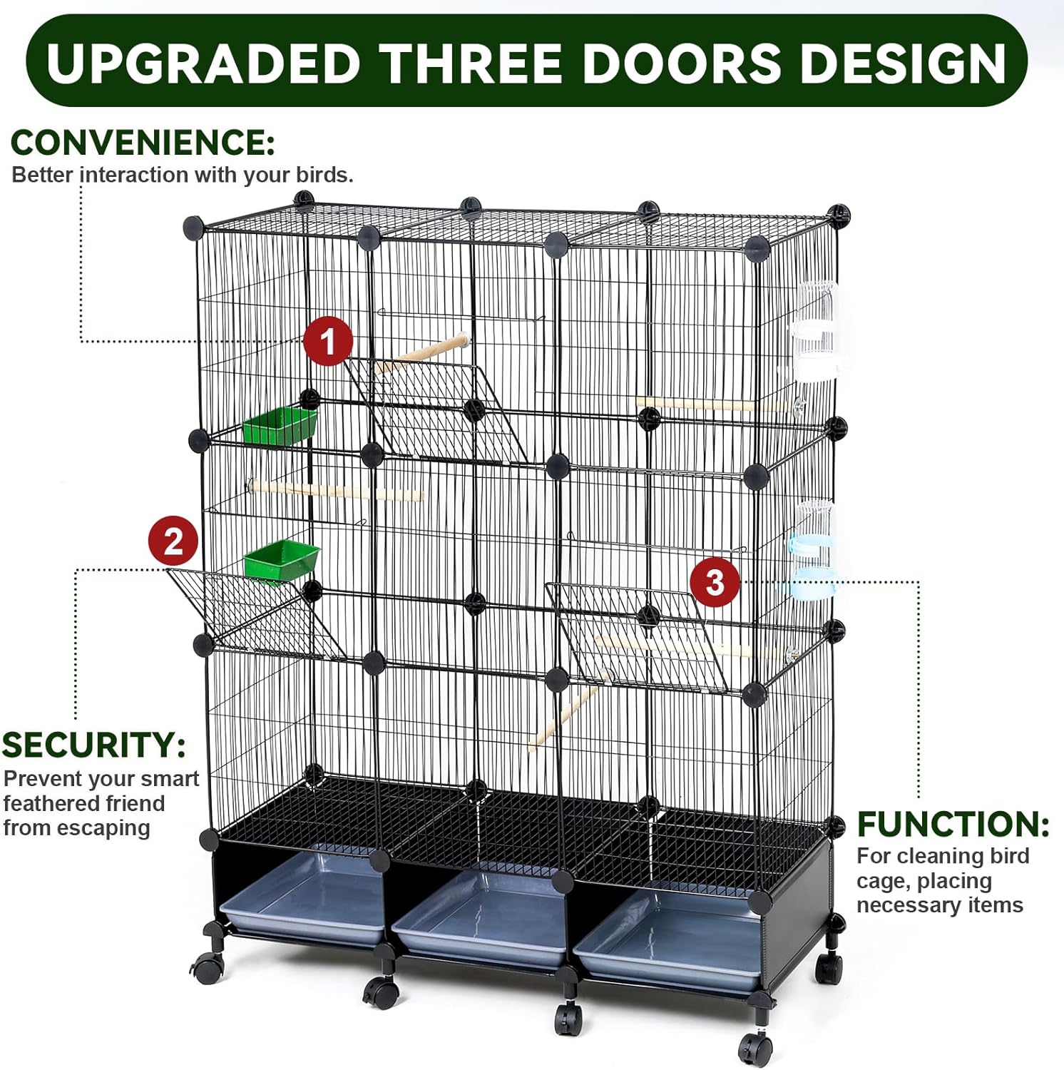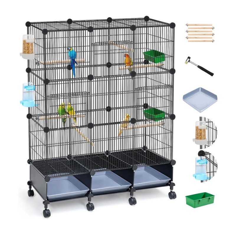 IWE Extra Large 3-Tier Bird Cage with Wheels, Movable, Reinforced Metal Mesh, Escape-Proof Design