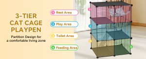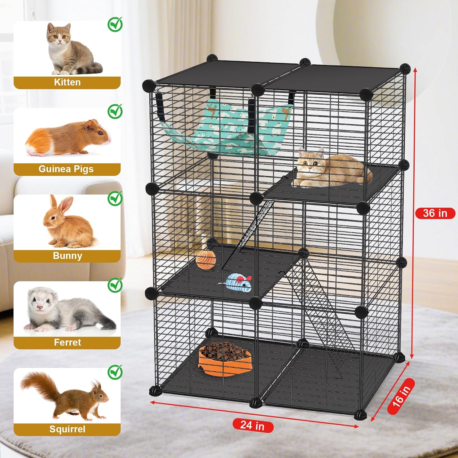 Cat Cage, 3-Tier DIY Catio Cat Enclosures,Detachable Metal Wire Kennel Cats Crate